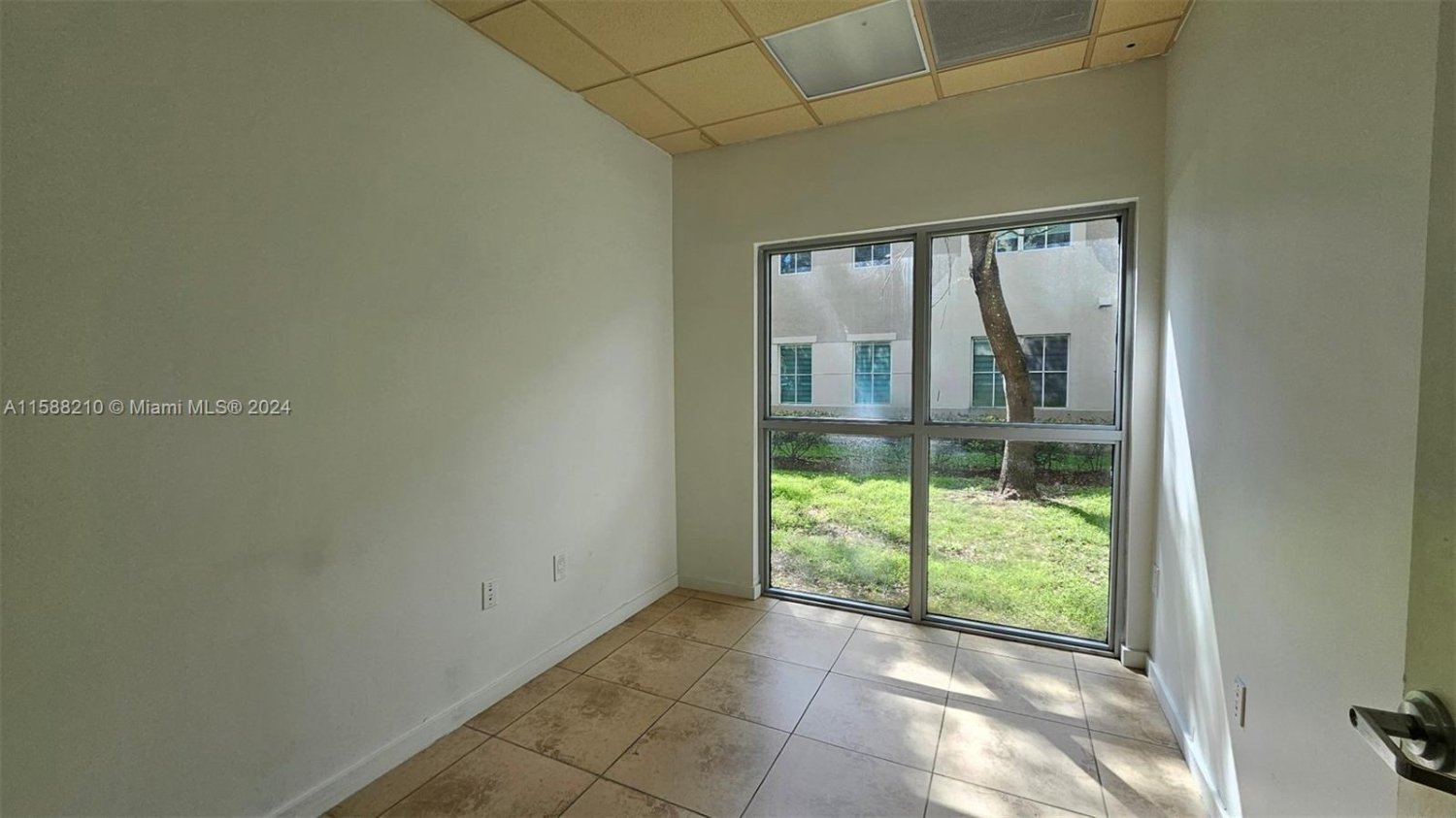 Glass-front office space with frontage on Bird Road. The end-cap unit has great visibility from the main street. The space is divided into 12 small offices, a kitchen, a conference room, and a reception. All offices have glass front doors, and glass doors separate the conference room. No medical uses that see patients on site are allowed in the building, including mental health therapy.