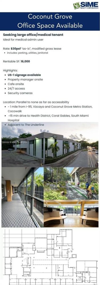 Adjacent to US-1, this two-story building provides a simple, affordable option with an onsite caféand ample surface-level parking. Its prime location and value within Coconut Grove make it a