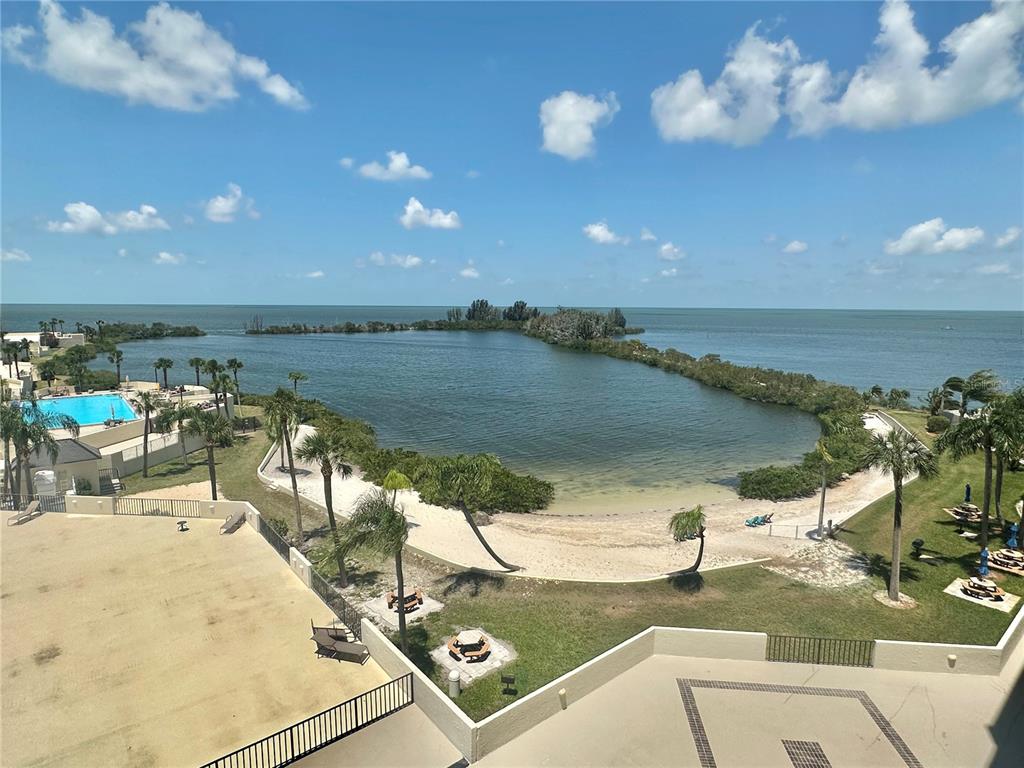 "AWESOME GULF OF AMERICA VIEWS, from this fifth floor furnished condo. Relax on the 22 ft private balcony overlooking the private Sandy Beach watching, Breathtaking Summer Sunsets. the dolphins play, the manatee float by, and all that Mother Nature has to offer on this "little island paradise. This 2 bedroom 2 bath condo features additional bonus room area that can be used as dining room, office, den or maybe additional guests sleeping area. Condo is offered furnished with all the appliances including washer and dryer. Two 8 foot wide sliding glass doors offer beautiful water views from the living room.dining area,kitchen,and master suite. Condo features newer waterproof vinyl plank styled floors throughout. Community offers Gulf side heated swimming pool , tennis & pickleball courts, private beach, picnic area, nature's trail and 24 hour guards for your upmost security. This is all located in quaint & quiet Hudson Beach close to multiple area parks, SunWest Aqua Park,beaches, golf courses, and restaurants. Easy commute to all that the Tampa Bay and St Pete/Clearwater areas have to offer both day and night. This condo is offered as a annual rent. Come take advantage for one of the Best Deal for a 2 bedroom condo on the island. Call today!