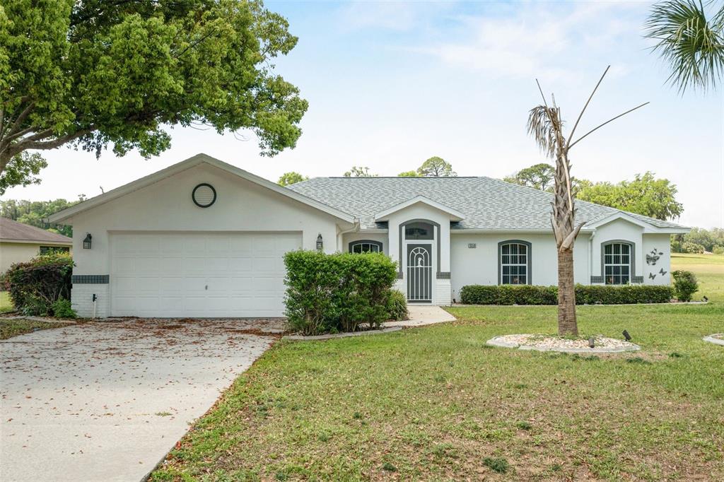 This villa offers 4 bedrooms, 2 bathrooms, pool, and a large pool deck for outdoor times! The master and the largest guest room, feature French doors opening up to the pool & lanai. The 3 bedrooms share a hall bath with access to the pool. This bathroom has a combo tub/shower. Large open kitchen with breakfast bar, open to the living room. Barstools, plenty of storage, pantry. Living room has access to the pool area through the glass sliding doors. Solar & electric (new in December 2024) heated pool and a large deck fitted out with a seating area and dining area, you will find yourself enjoying the Sandhill cranes, and wonderful sunset! Outdoor shower is convenient! Washer & dryer are in the garage, and there is an extra big storage closet as well. Storage racks stay. Roof replaced in June 2022, AC is replace is September 2023. New electric pool heater December 2024. This home is in a rental program; furniture stays for the convenience of the buyers. If not needed, it will be removed. NO HOA, NO CDD, NO RESTRICTIONS. Shed, fences, are allowed. Come see us!MLS #: OM698622