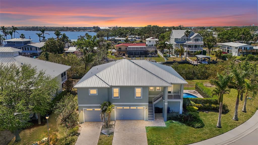 Welcome to 4109 Cobia Ct—a remarkable custom-built waterfront home where luxury, privacy, and modern convenience meet in perfect harmony. Built in 2017 with solid all-block construction (even on the second story) and a durable metal roof, this 4-bedroom, 3.5-bath residence is rarely available on Snead Island, one of the area’s most exclusive and tucked-away waterfront communities—private, peaceful, yet still close to everything. Situated on an oversized lot with 134 feet of direct saltwater canal frontage, this home offers no fixed bridges to the Gulf, making it a true boater’s paradise. Enjoy a composite dock with walk-way lights, water and electric, Covered boat lift, floating dock for your Jet Ski, and your very own gas-heated pool with LED lighting, deck jets, and a travertine deck—perfect for entertaining or soaking in the sunshine. The pool is fully gated, and just beyond, a spacious yard offers plenty of room for you're outdoor activities. Inside, you’ll find a light-filled open floor plan with expansive ceilings, Luxury Coretec waterproof flooring, elegant tray ceilings, and a fresh, coastal-inspired design. The chef’s kitchen features high-end stainless steel appliances, an oversized island with views of the backyard and canal, a generous walk-in pantry, and smart-home technology integrated throughout. The split bedroom layout offers privacy for everyone, with both the primary suite and a secondary bedroom featuring ensuite bathrooms.