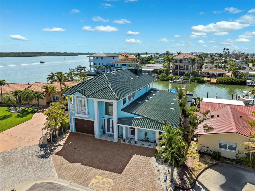 Discover the ultimate in luxury living with this newly remodeled waterfront home in Redington Shores, perfectly positioned near the point for spectacular views. Spanning over 3,500 sq ft, (4651SF under roof) this home is designed for multi-generational living with two primary suites. The first floor features an open great room with floor-to-ceiling windows, offering stunning views of the water and outdoor living space. The brand new modern coastal kitchen is a chef's dream with solid wood white cabinetry, a striking 10x6 ft island with seagull grey stain finish, exquisite stone countertops, and a matching wet bar for effortless entertaining. This floor also hosts a waterfront primary suite with a remodeled en-suite bath, plus two additional bedrooms and two remodeled bathrooms. The entire second level (over 1,000 SF) is a private retreat, showcasing an impressive primary suite with vaulted ceilings, a large custom walk-in closet, a morning kitchen, and a versatile space for a gym, office, or nursery. Enjoy expansive views from the expansive 400 SF+ covered deck and a rooftop viewing area accessed by a spiral staircase, perfect for sunsets and fireworks. The outdoor area is designed for relaxation and entertainment, featuring a beautiful pool, brick pavers, a covered gazebo, an 18x30 composite dock, and a 10,000 lb boat lift. Inside, enjoy designer touches such as large format porcelain tile throughout the first floor, a cathedral foyer, and a stylish staircase with glass railings and hand-painted risers. The home also includes a glazed tile roof, 2 tankless hot water tanks, and an oversized temperature-controlled 1 car garage with a half bath, laundry, and ample storage, plus an expanded paver driveway accommodating three cars. This residence offers elegant design, functionality, and stunning waterfront living perfect to meet the needs for today's modern lifestyle!