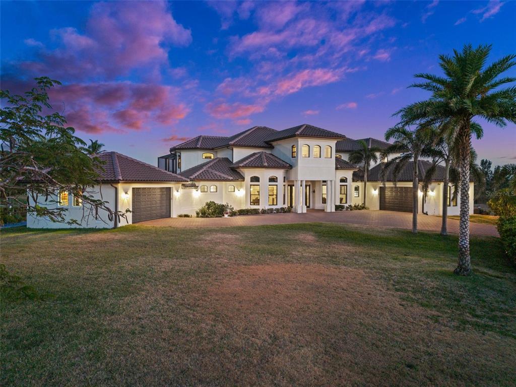 Live the Luxury Coastal lifestyle with this STUNNING SAILBOAT ACCESS 4 Bedroom, 4.5 Bathroom, 2 Car attached Garage & a 2 Car detached garage, TWO-STORY, Pool home with a Den, Family & Bonus rooms. Situated on a DOUBLE TIP Lot with 255ft of water frontage, a Wood dock & 16,000-lb boat lift, South Gulf Cove. Boasting over 5,200 square feet of living space, this home is bathed in natural light from expansive windows and offers BEAUTIFUL water views throughout, blending comfort, elegance, and scenic beauty. The living room impresses with soaring tray ceilings and breathtaking views, seamlessly connected to a formal dining room with a dry bar, ideal for entertaining. The GOURMET kitchen is outfitted with sleek, all-stainless steel appliances—including a built-in oven & convection oven/microwave— with granite countertops, a stylish tile backsplash, and a spacious center island. A wet bar with a wine cooler, a breakfast bar and ample cabinetry enhance the kitchen’s functionality. Just off the kitchen, a cozy dinette offers picturesque water views, while the family room provides a welcoming space for relaxation or gatherings. The main level includes a second master suite with French doors to the lanai, a walk-in closet and an en-suite bathroom with a dual-sink vanity, spa bath, and walk-in shower. A comfortable guest bedroom provides additional accommodations, while a flexible bonus room can be used as a second home office, media or music room, or extra bedroom to suit your needs. On the second floor, you will find a private and elevated living experience, beginning with a well-appointed guest bedroom featuring a built-in closet. A dedicated home office overlooks serene water views, creating an inspiring and peaceful workspace. The crown jewel of this level is the primary master suite, a true retreat with dual walk-in closets, a dedicated makeup vanity, and elegant French doors that open to a private balcony. The en-suite bathroom is designed for relaxation, showcasing a dual-sink vanity, a spa bath, a spacious walk-in shower, and a second set of French doors leading to a balcony with views of the pool below. Adjacent to the master suite balcony is the Florida room, a bright and inviting space designed for year-round enjoyment, featuring stunning water views and a mini-split A/C system for personalized climate control. Expansive windows flood the room with natural light, while a spiral staircase provides direct access to the lanai, seamlessly blending indoor and outdoor living. Step into your private outdoor oasis, with a large screened lanai designed for elevated coastal living. Entertain in style with an outdoor kitchen, complemented by a convenient half bathroom and an outdoor shower. Unwind in the heated saltwater pool and spa, w/ 2025 heater, all framed by serene canal views that offer beauty and tranquility. A true boater’s dream—this custom 8' x 255' dock is a waterfront showpiece, built for luxury waterfront living, equipped with water and electricity, this expansive dock includes a 16,000 lb. boat lift with a cover. 2024 TILE ROOF - IMPACT WINDOWS & DOORS - FURNITURE NEGOTIABLE - see feature sheet for more features! South Gulf Cove is a deed-restricted neighborhood with an optional HOA that offers members a clubhouse, waterfront park with playground, and private boat ramp. Conveniently located close to local shopping & boutiques, fine & casual dining, LIVE entertainment, and AWARD-WINNING BEACHES!! ADJACENT LOT AVAILABLE FOR PURCHASE