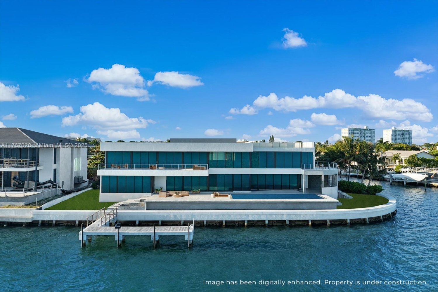 Step Inside With Me! Be the first to call this Modern Mansion home, in the gated community of San Souci Estates with breathtaking Miami skyline views. Designed by Léo Shehtman, endless walls of glass reveal expansive living spaces with a grand salon featuring 22' ceilings as its centerpiece. The culinary experience by Dell Anno offers sleek cabinetry, central island, oversized pantry and butler's kitchen. A curved architectural staircase leads to the primary wing with TV lounge, marble bath, dressing room & private terrace overlooking Indian Creek Island. A stunning bayfront pool, spa & rooftop setting are divine for hosting. Interiors include media room, fitness, study, staff quarters. This cul-de-sac 16,500+ SF point lot has 217' of unobstructed water views. Ample driveway+ 2 car garage.MLS #: A11767028