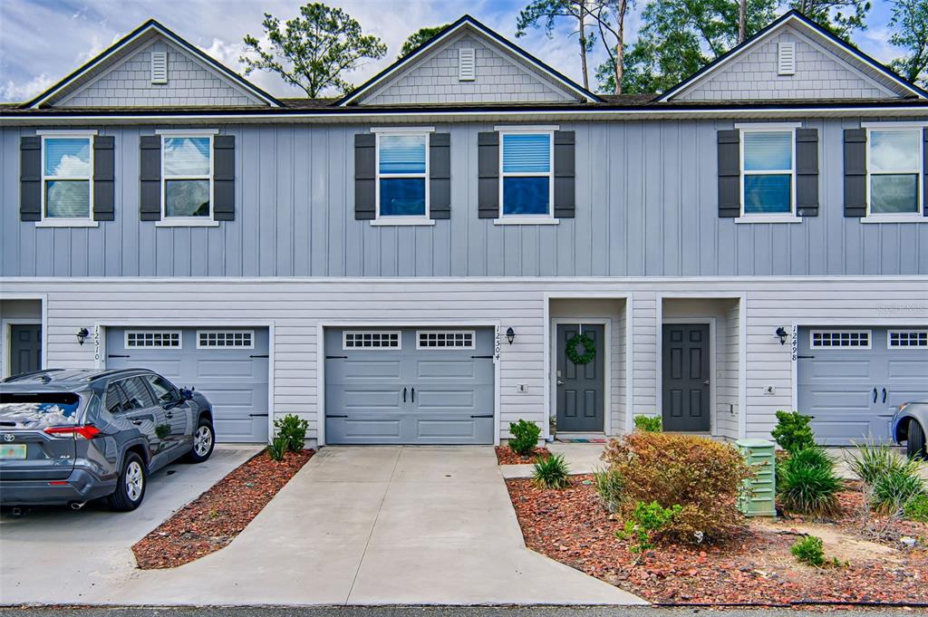 This charming 3-bedroom, 2.5-bathroom townhome in the desirable Tara West End community offers modern living in a prime location. Built in 2022, the home features an open-concept kitchen with granite countertops, stainless steel appliances, a spacious pantry, and a large island ideal for entertaining. The kitchen seamlessly flows into the living and dining areas, creating a welcoming space for gatherings. Sliding glass doors lead to a screened-in lanai that overlooks wooded green space and provides easy access to community walking trails. Upstairs, the primary suite includes a walk-in closet and an en-suite bathroom with dual sink vanities and a walk-in shower. Two additional bedrooms, a second full bathroom, and a laundry room complete the upper level. Additional features include a one-car garage and smart home capabilities for the AC, appliances, and security system. This home is also wired for fiber optics and you will save money with Clay Electric! Residents of Tara West End enjoy access to community amenities such as a pool, tennis/pickleball courts, and scenic walking trails. The townhome is conveniently located across from Tioga Town Center, offering shopping and dining options, and is within easy reach of I-75, HCA North Florida Hospital, Santa Fe College, the University of Florida, UF Health, and the VA. Zoned for excellent schools, this home combines modern amenities with a sought-after location. Welcome HOME!