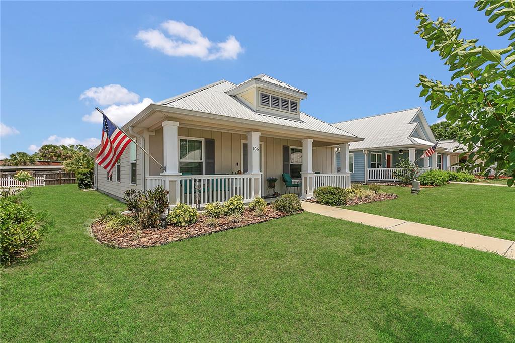 Charming Key West cottage-style home with inviting front porch in a quaint, quiet 55+ Active Neighborhood! Built in 2018, this home offers ADA accessibility, low-maintenance living, and is equipped with a durable metal roof built to last. Step inside and feel right at home in this light-filled, open-concept living space designed for comfort and connection. Windows line the living and dining areas, offering peaceful views of Lake Enola! The living room flows effortlessly into the dining area and kitchen, creating an ideal setup for everyday living or entertaining. The kitchen features stainless steel appliances, ample countertops, and cabinetry for plenty of storage. A breakfast bar with pendant lighting connects seamlessly to the dining space, offering a casual spot for gathering. Comfortable bedrooms & thoughtful bath design for everyday ease! Just off the primary bedroom, the primary bathroom features a large, walk-in shower equipped with safety grab bars and a wide vanity with extra counter space. The second bedroom provides a cozy space ideal for guests, a home office, or both. The adjacent second bathroom includes a shower/tub combo and built-in shelving for convenience. At the rear of the home, you'll find a dedicated laundry closet and an additional storage closet, great for anything you want easily accessible but neatly tucked away. Enjoy the ease of a private-access driveway that leads to a spacious one-car garage. Step onto the built-in rear deck, an ideal spot for grilling, relaxing, or soaking in the sunshine. Set in a peaceful, friendly neighborhood with manicured lawns, this home is part of a tight-knit community where pride of ownership shines. One of its standout features is the private community dock overlooking Lake Enola. With just 13 homes in the community, you'll enjoy the best of Florida living in a quiet, hidden gem of a neighborhood. Call us today for a private showing!
