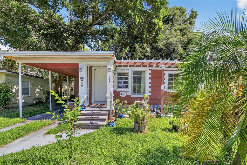 If you are looking for the perfect St. Pete home to make your own, you have found it! This home includes 2 bedrooms, 1 full bathroom, a carport for covered parking, and a roof and AC that were replaced in 2021 and 2020, respectively. You will love the oversized, fenced backyard with beautiful mature landscaping and shaded patio area, and the lush front yard complete with your own mulberry, moringa, elderberry, cranberry hibiscus, pineapple, pineapple sage, and strawberry plants. As you enter you find the living room that opens into the kitchen with direct access to the backyard. Off the kitchen is another bonus room perfect for a dining room or office. On the other side of the living room you find the 2 bedrooms and full bathroom. This home is perfect for a first time buyer ready to have their own space, an investor looking for another rental for their portfolio, or a handyperson looking to downsize with a house they can add sweat equity into. All of this is around the corner from Lake Maggiore so you can enjoy Florida nature and wildlife on walks after work. This home stayed dry during the hurricanes so you can confidently move in, enjoy weekends or sunsets at the stunning Gulf Beaches and days taking in the shops, restaurants, and charm of Downtown St. Pete within a 10 minute drive. You do not want to miss out on this one so schedule your showing today!