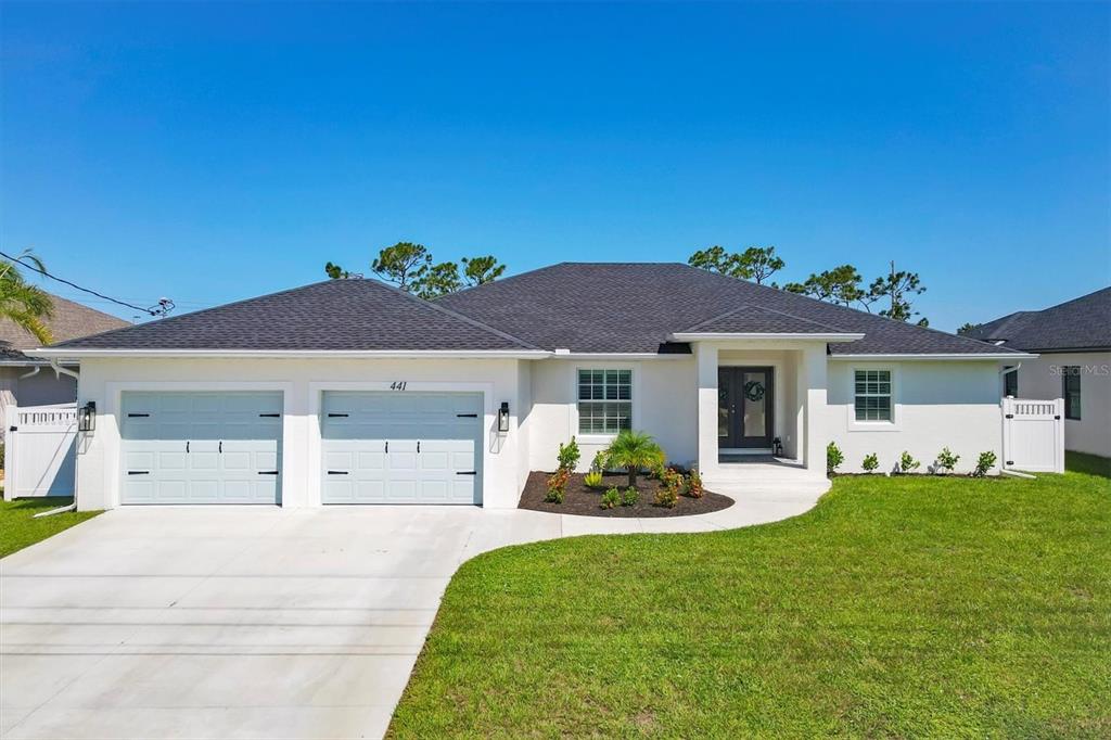 PRICED BELOW APPRAISED VALUE!!! NEW BUILD-2024, X FLOOD ZONE (SAVINGS ON INSURANCE), HEATED POOL, IMPACT WINDOWS & SLIDERS (SAVINGS), PLANTATION SHUTTERS, PRIVACY FENCE WITH DOG RUN, QUARTZ COUNTERTOPS AND WOOD PLANK TILE THROUGHOUT!! All of this for under $540,000!! Why settle for an older home when you can step into this BETTER THAN NEW 2024 CUSTOM POOL HOME WITH THOUSANDS IN UPGRADES already done? Located in the desirable golfing community of Rotonda West, this thoughtfully designed split floorplan offers a private primary suite, two guest bedrooms, and a versatile flex space perfect for an office, gym, or 4th bedroom. Inside, enjoy wood-look porcelain tile throughout (NO CARPET), high-efficiency lighting and fans, plantation shutters, custom trim work, and hurricane-impact windows and sliders. The gourmet kitchen shines with timeless white cabinetry, double pantry, custom backsplash, and level 3 quartz counters, while a stylish bar with cedar shelving adds extra flair. A dedicated laundry room off the kitchen, features 36" upper coastal cabinets, a drying rail for clothes, and a utility sink-blending function with personality. Retreat to the primary suite with dual closets, custom tile shower, pool access, and extra linen storage.