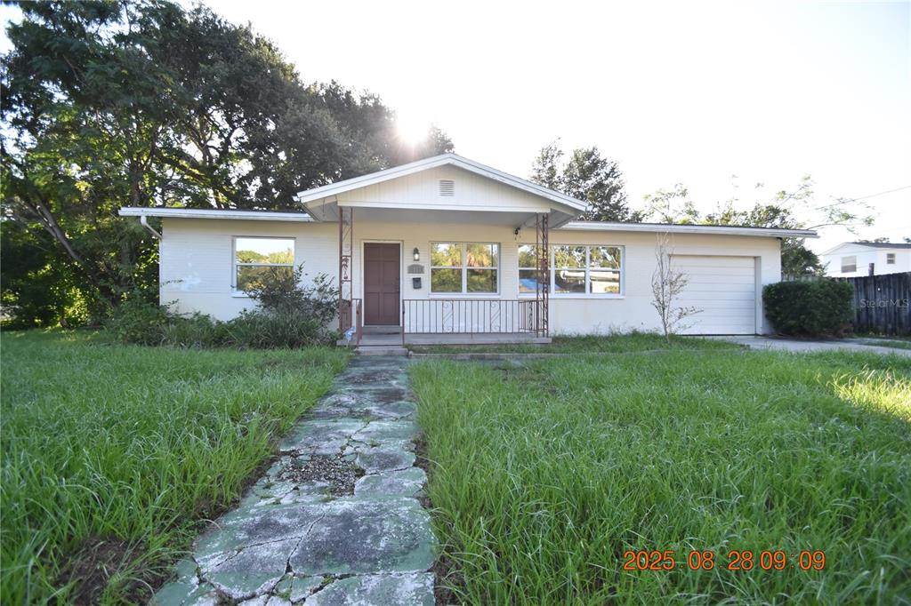 2 Bedroom 1.5 Bath St Pete home with attached garage and 925 sq ft. Large corner lot. Attached garage keeps your car cool and dry. Covered front porch. Large great room with dining area off the kitchen as well. Built-in display shelves to display your treasures. Cozy kitchen with a window to the back yard. Window blinds for light control and privacy. Ceiling fans will be sending you a cool breeze. Central heat & air for to keep you comfy year round. Washer and dryer INCLUDED for your convenience of course!