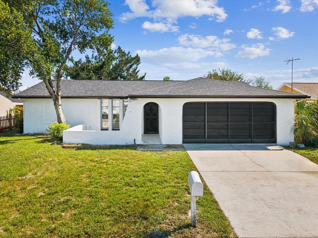 One or more photo(s) has been virtually staged. Welcome to this beautifully updated Port Richey home featuring modern finishes and a functional layout. Improvement highlights: freshly painted interior and exterior, improved lighting (inside and out), plumbing fixtures, luxury vinyl flooring & baseboards throughout, renovated bathrooms & improved kitchen! Enter into this light, bright and spacious Living Room with ceiling fan! The updated kitchen offers light cabinetry, butcher block-style counters, subway tile backsplash, and a wine rack feature, opening seamlessly to the family room, ideal for gatherings or relaxing evenings. The primary bedroom includes an ensuite bath with a walk-in shower, seamless glass door, solid-surface vanity, stylish tile, and updated fixtures. The second bedroom features a walk-in closet and private access to the hall bath, with a walk-in shower, seamless glass door, solid-surface vanity, stylish tile, and updated fixtures. Additional recent updates include a new roof and an updated electrical panel in 2024. An oversized two-car garage provides convenience, while the spacious fenced backyard offers plenty of room to relax, garden, or play. The shed is operational and conveys as-is. With quick access to the Suncoast Parkway and just 35 minutes to Tampa International Airport, this location combines comfort and convenience, close to shopping, dining, schools, parks, and the Gulf beaches.